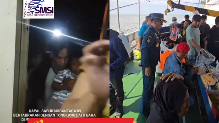 SAMARINDA-Kapal Sabuk Nusantara 89 yang berlayar dari Donggala, Sulawesi Tengah menuju Samarinda, Kalimantan Timur mengalami tabrakan dengan kapal tongkang batu bara di muara Sungai Mahakam