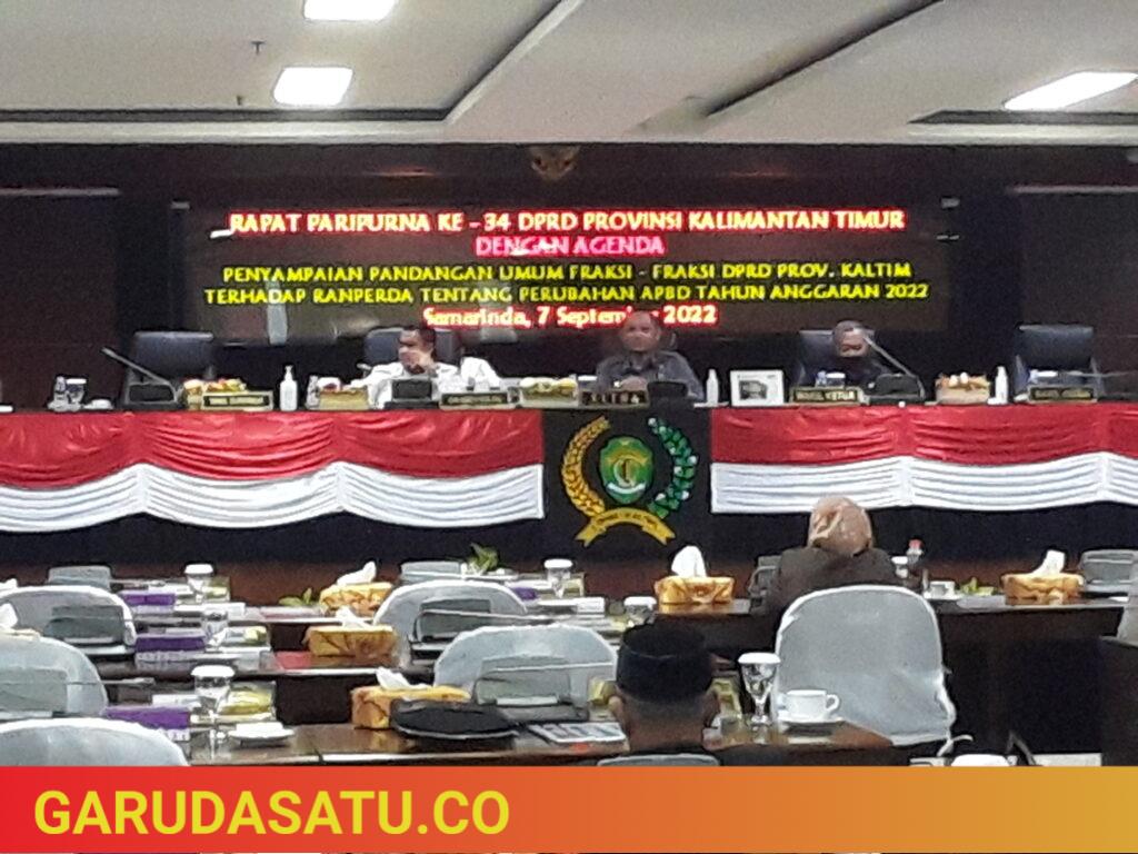 GARUDASATU.CO,SAMARINDA-Dewan Perwakilan Rakyat Daerah Provinsi Kalimantan Timur kembali menggelar rapat Paripurna, rapat paripurna ke 34 tersebut dengan agenda pandangan umum fraksi fraksi DPRD Kaltim terkait nota penjelasan keuangan Raperda tentang anggaran perubahan APDB Kaltim tahun 2022 di lantai 6 gedung D, Rabu(7/9/2022).